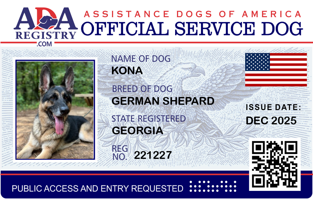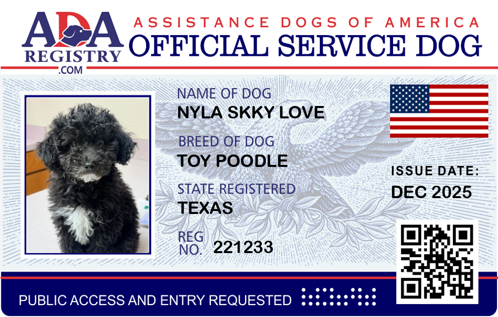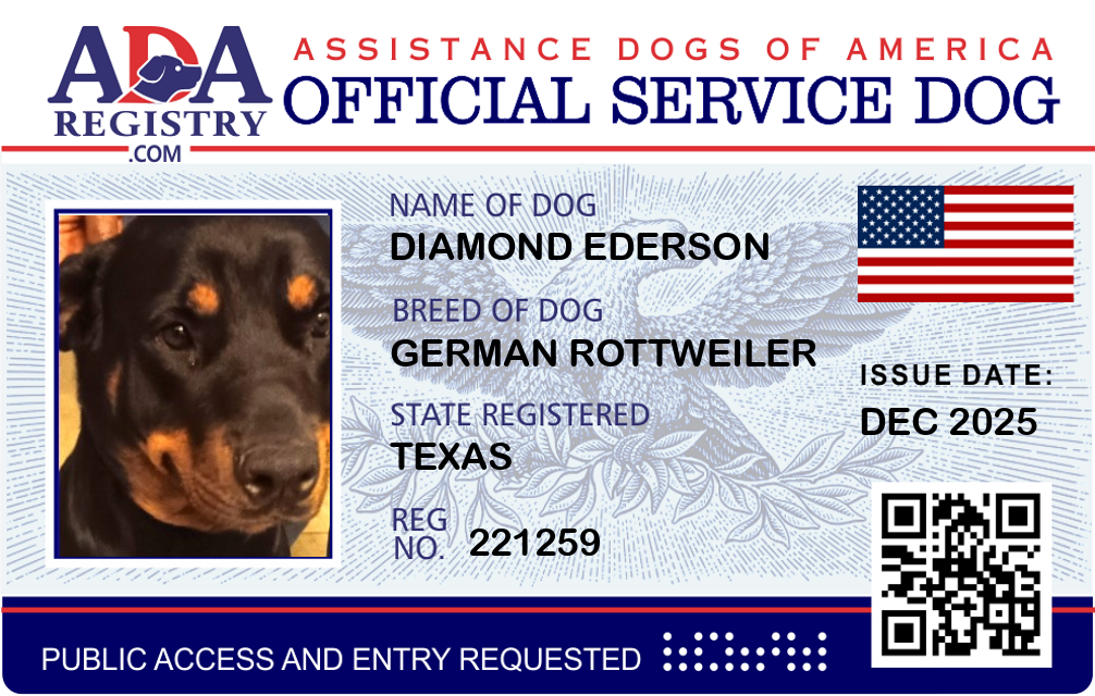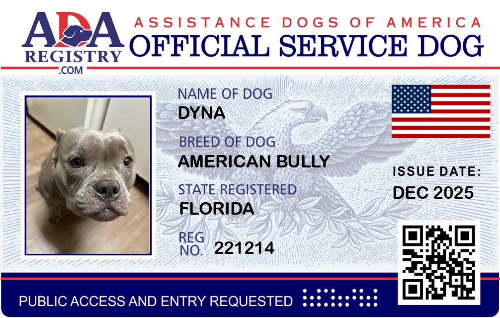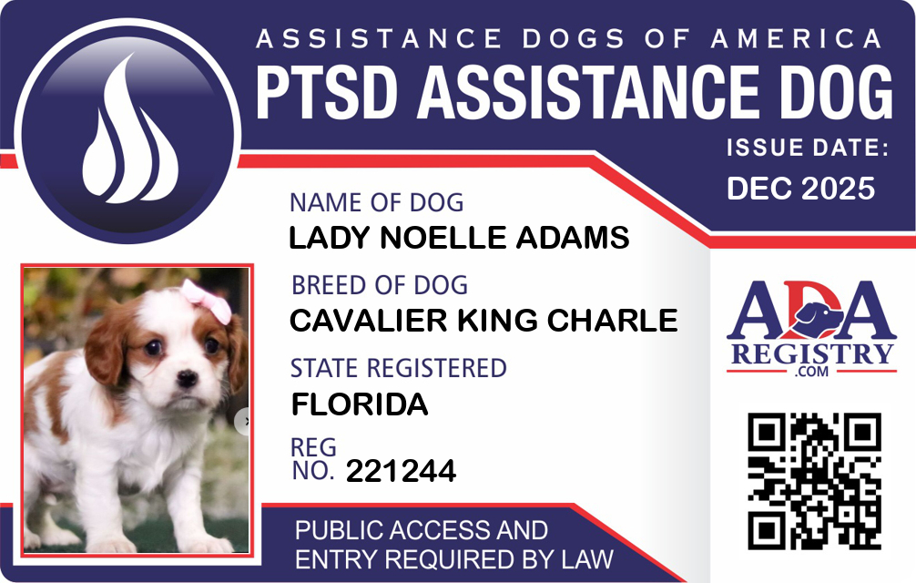 PTSD Assistance Dog Registration for Lady Noelle Adams