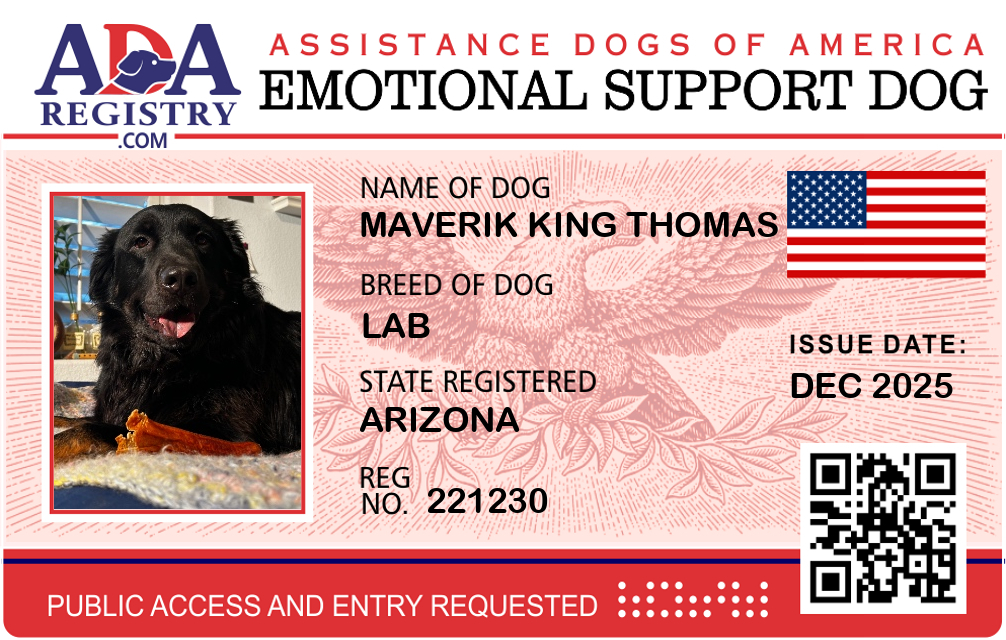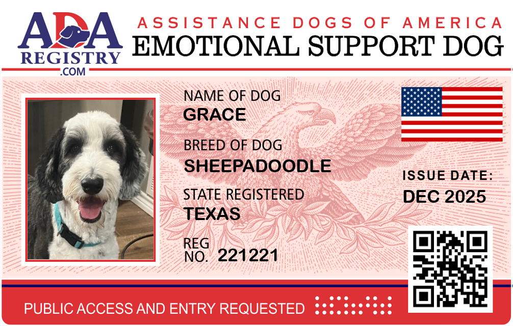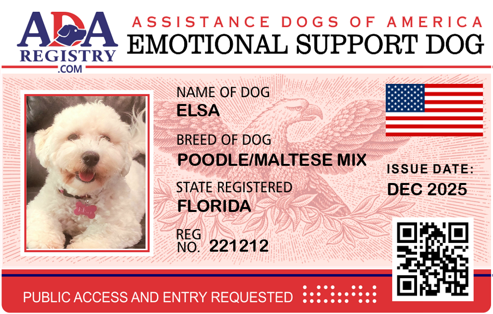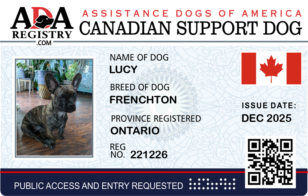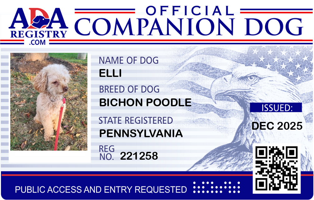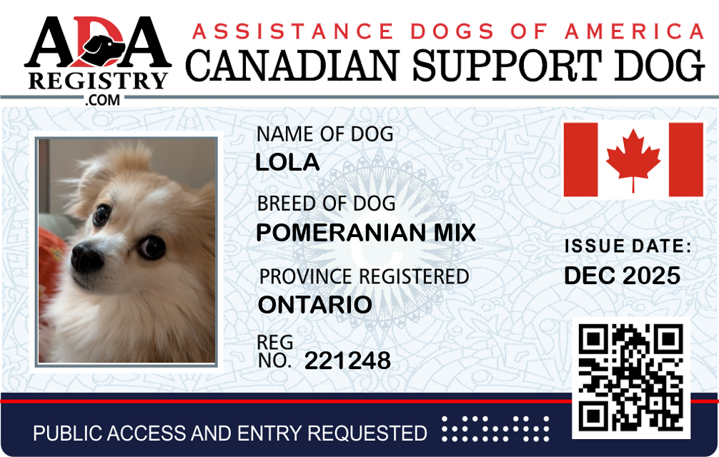 PTSD Assistance Dog Registration for Lady Noelle Adams
