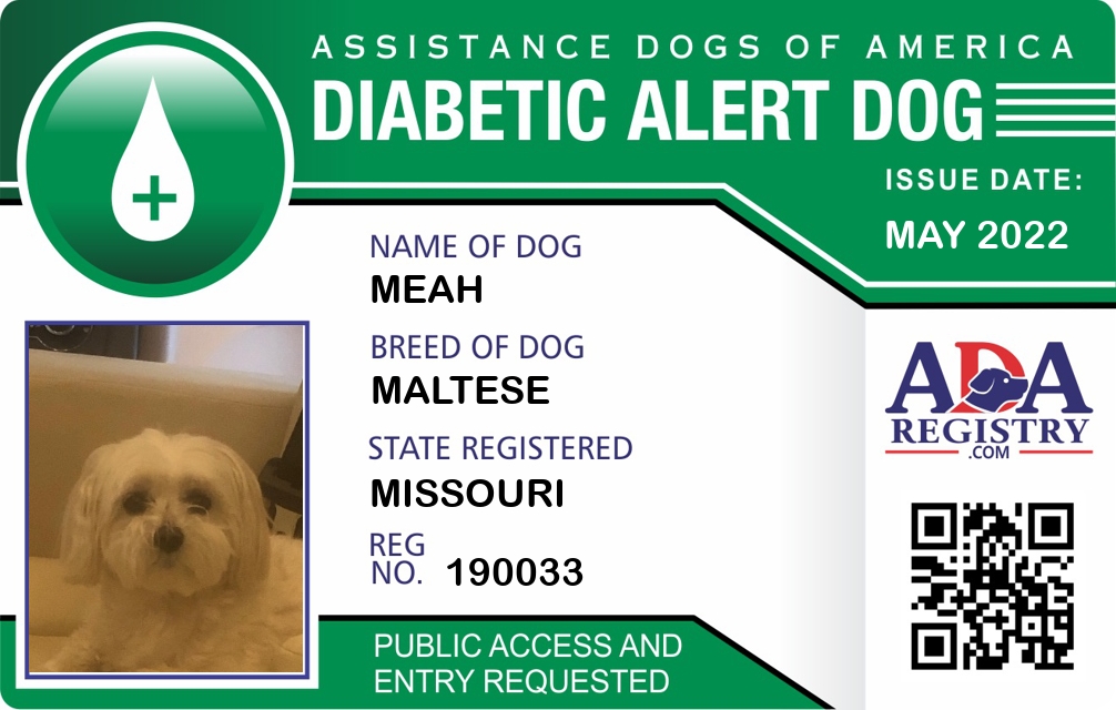 Diabetic Alert Dog Registration for Meah