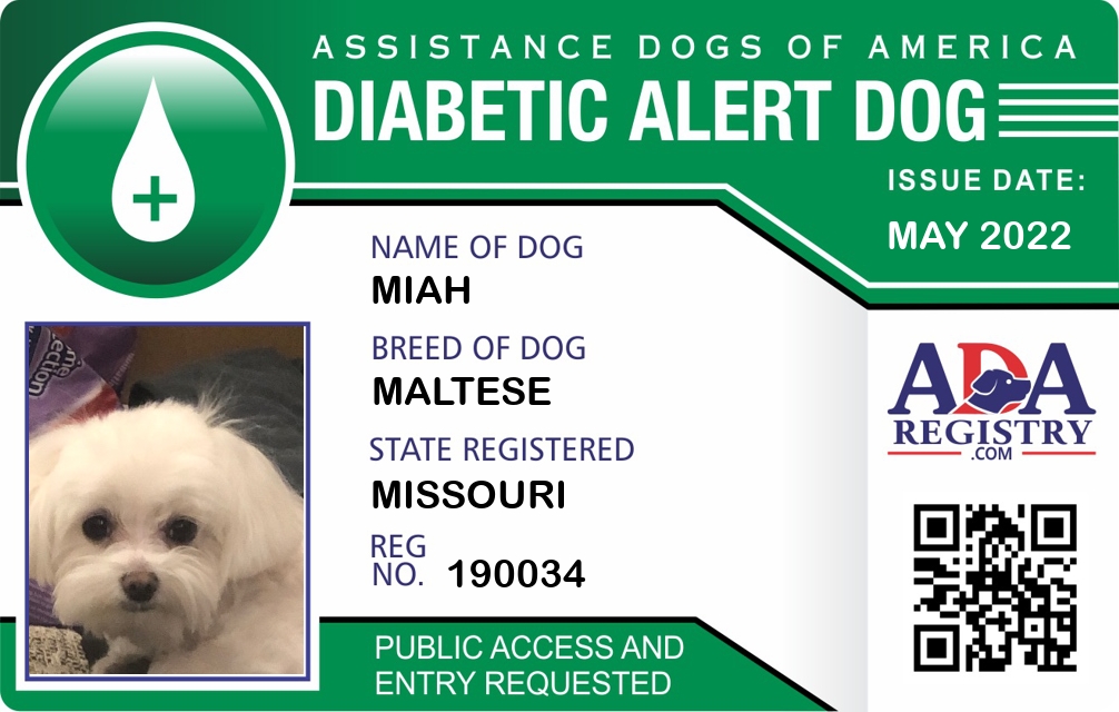 Diabetic Alert Dog Registration for Miah