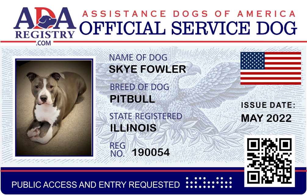 Service Dog Registration for Skye Fowler