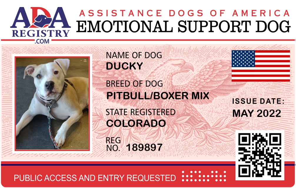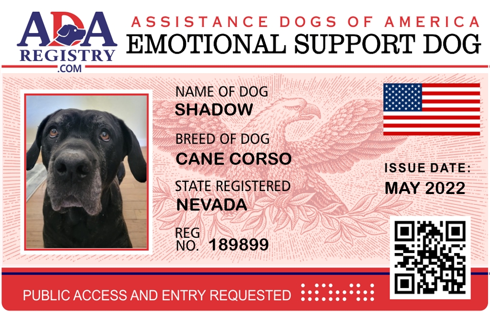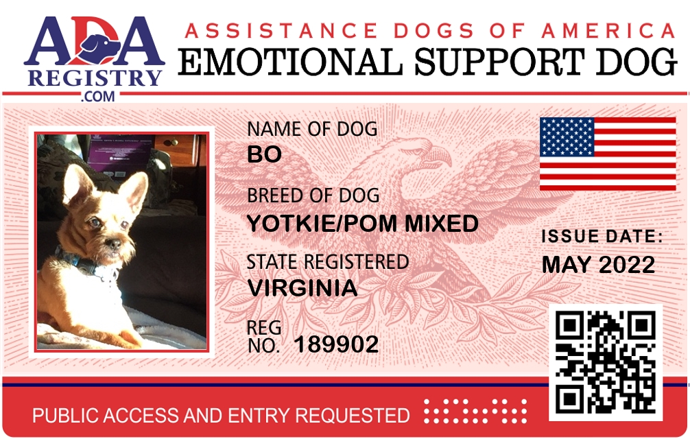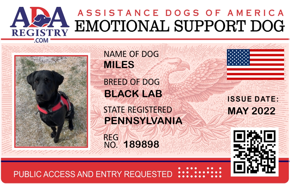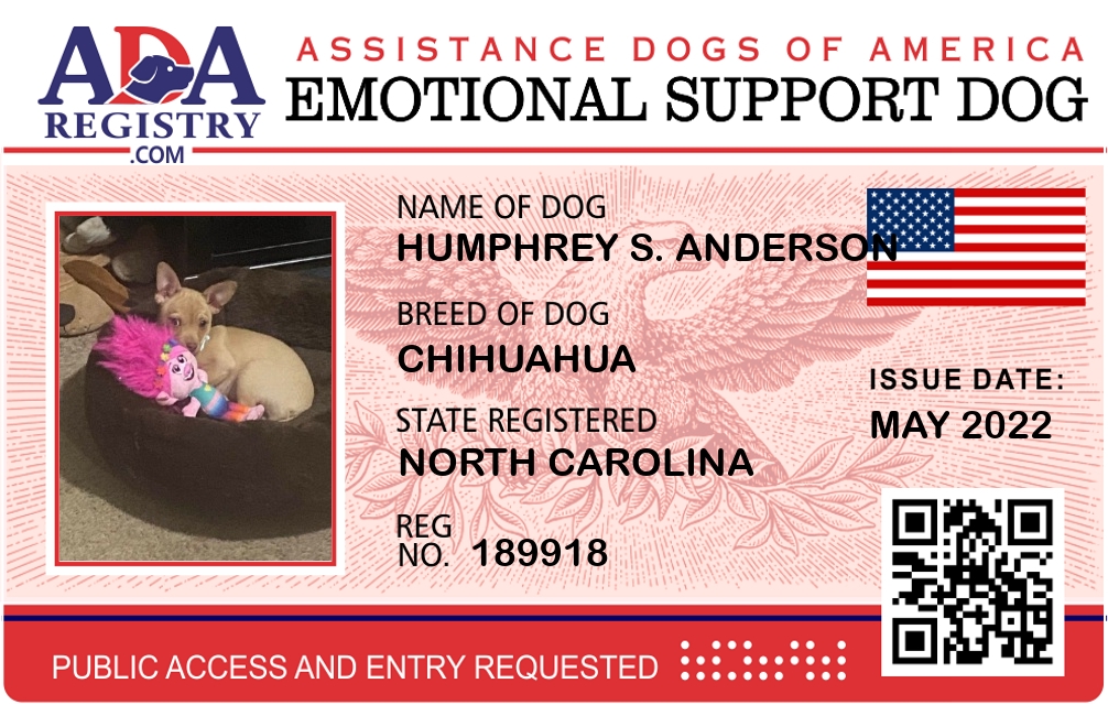 Emotional Support Dog Registration for Humphrey S. Anderson