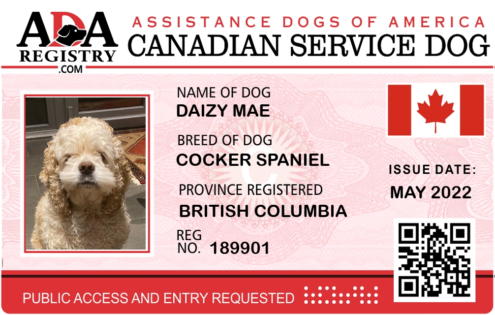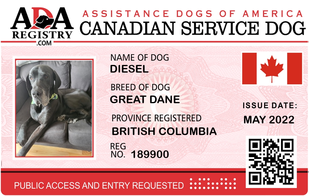 Registration Type: Brace / Mobility Assistance Dog Registration