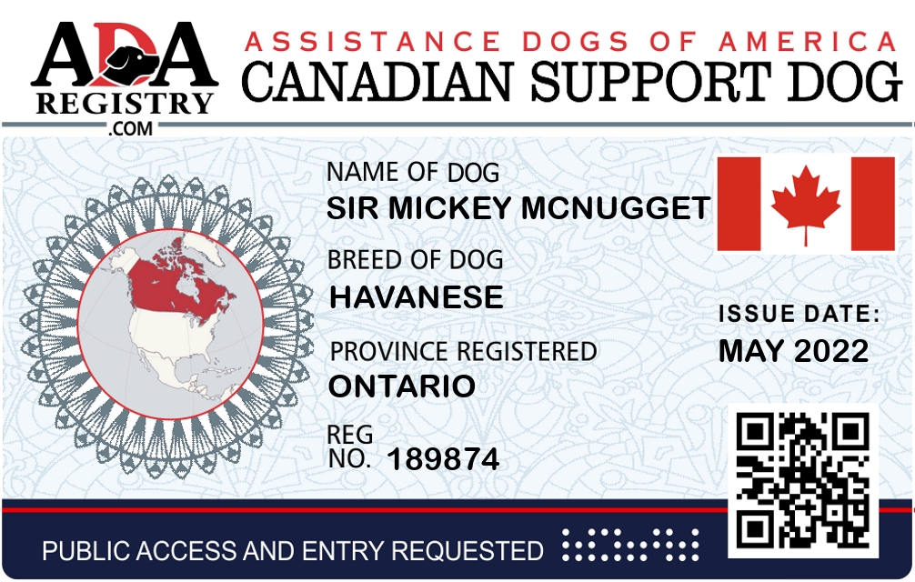 Emotional Support Dog Registration for Sir Mickey McNugget