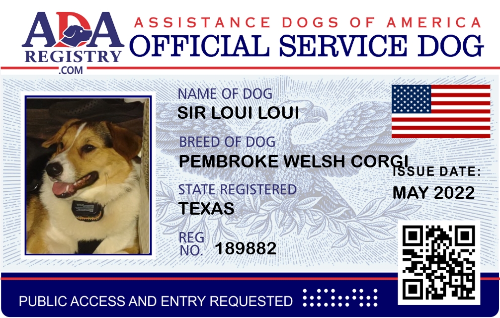 Service Dog Registration for Sir Loui Loui