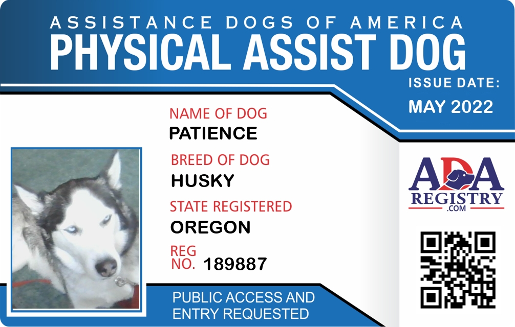 Physical Assistance Dog Registration for Patience