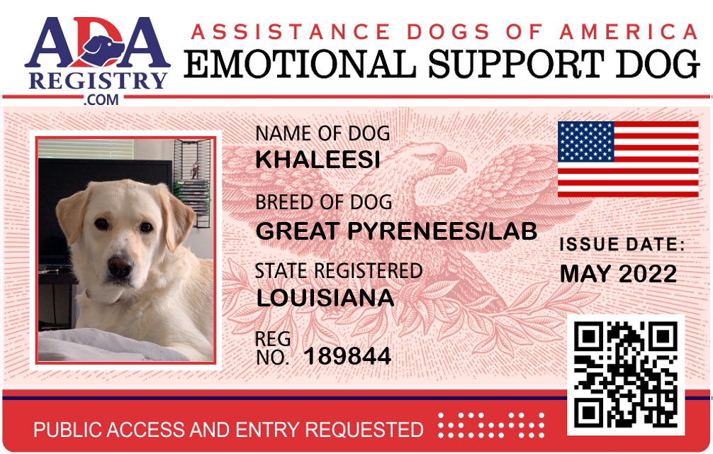 Emotional Support Dog Registration for Khaleesi