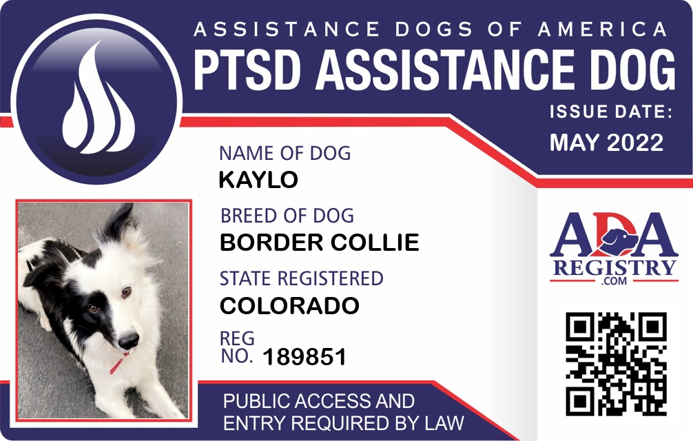 PTSD Assistance Dog Registration for Kaylo
