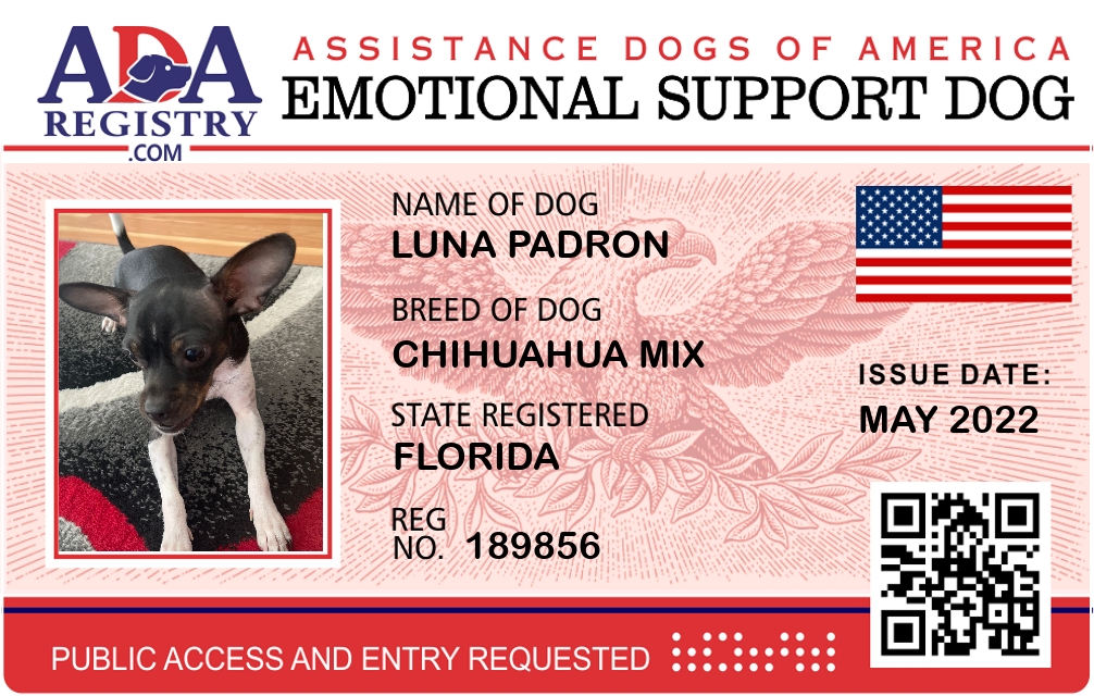 Emotional Support Dog Registration for Luna Padron