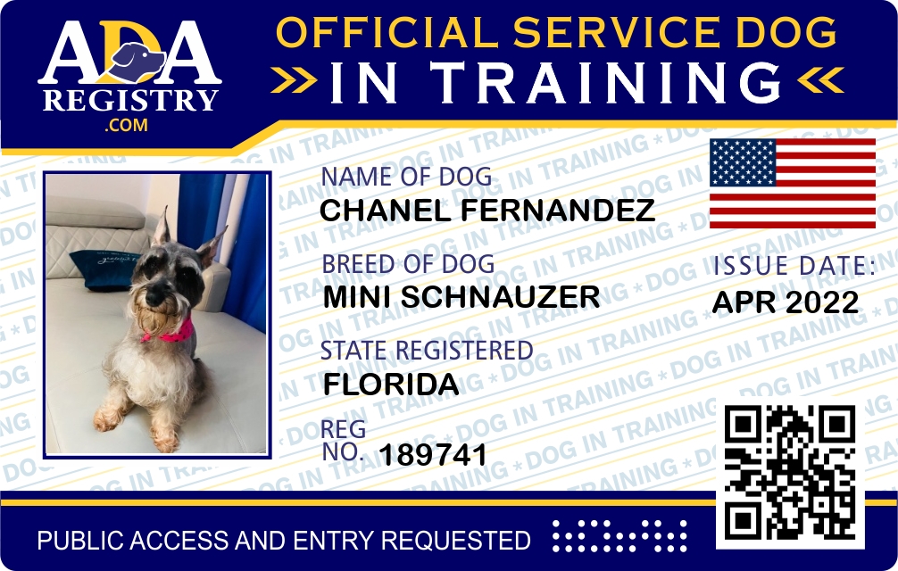 Service Dog In Training Registration for Chanel Fernandez