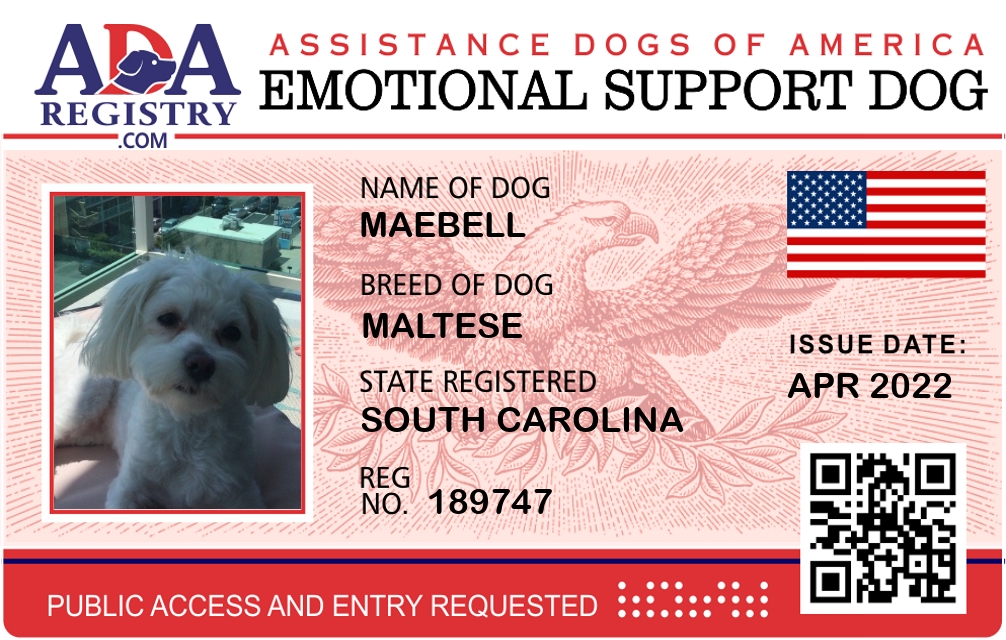 Emotional Support Dog Registration for Maebell