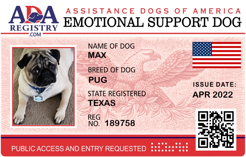 Emotional Support Dog Registration for Max