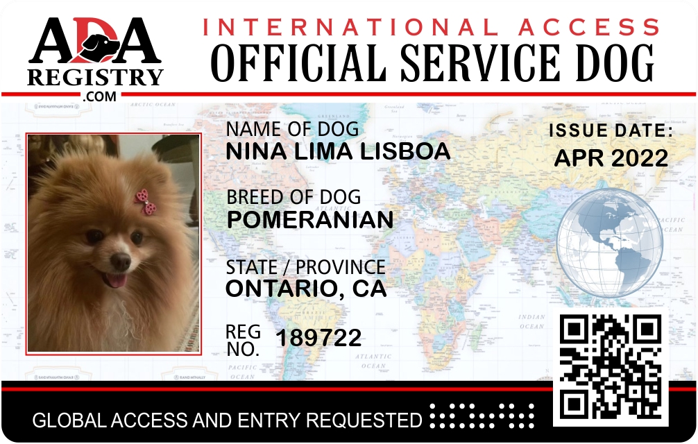 Service Dog Registration for Nina Lima Lisboa