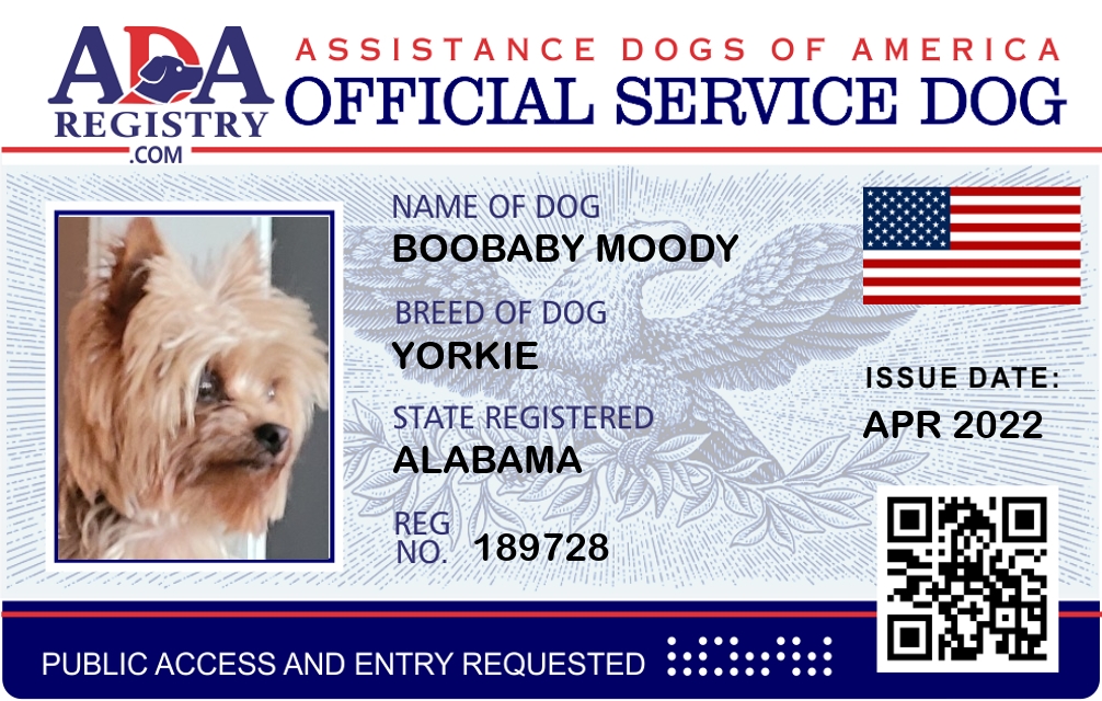 Service Dog Registration for Boobaby Moody
