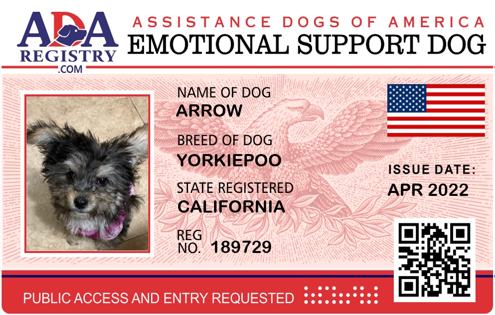 Emotional Support Dog Registration for Arrow