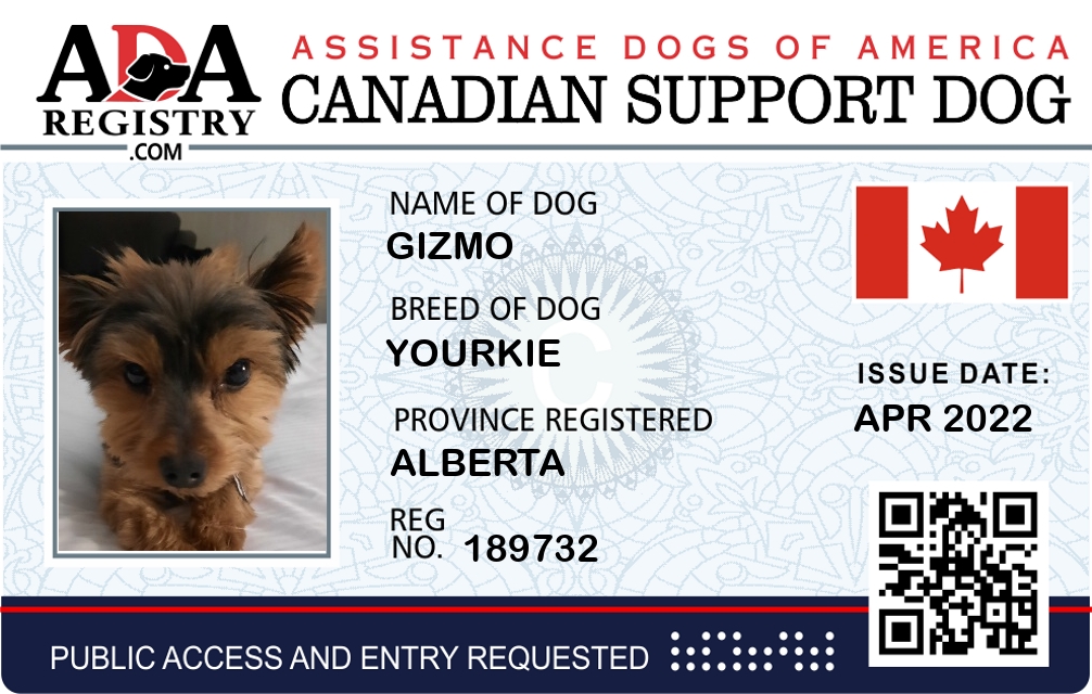 Emotional Support Dog Registration for Gizmo
