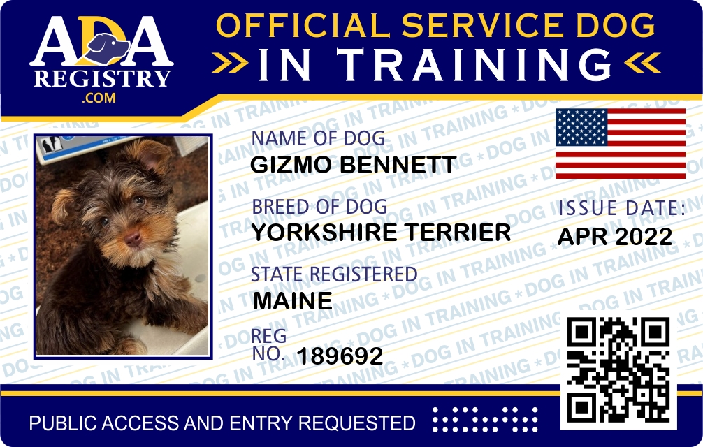 Service Dog In Training Registration for Gizmo Bennett