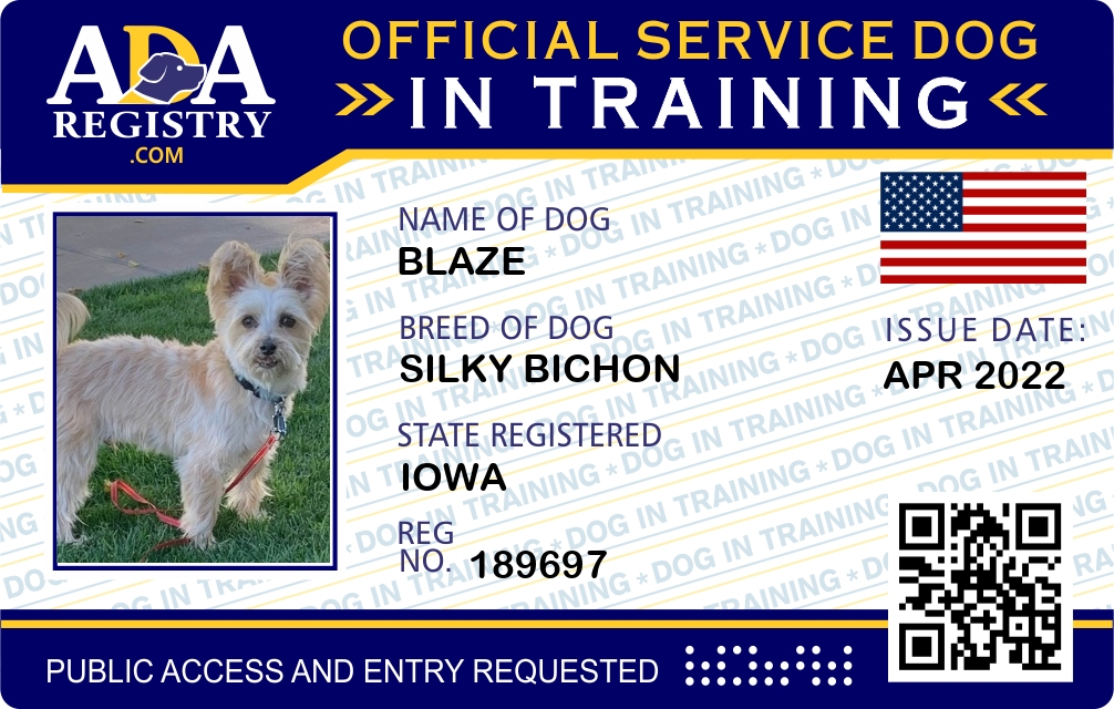 Service Dog In Training Registration for Blaze