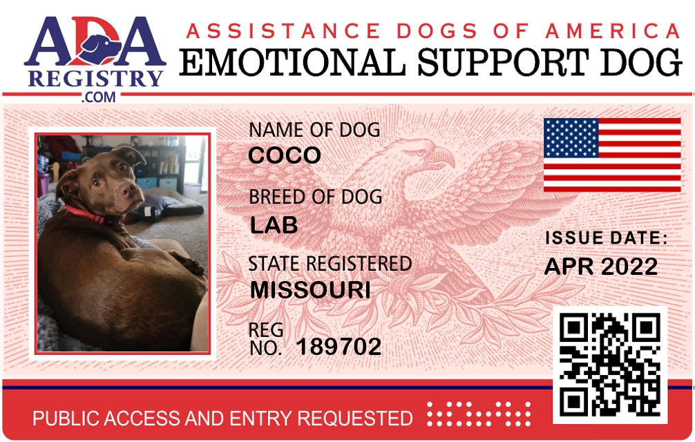 Emotional Support Dog Registration for Coco