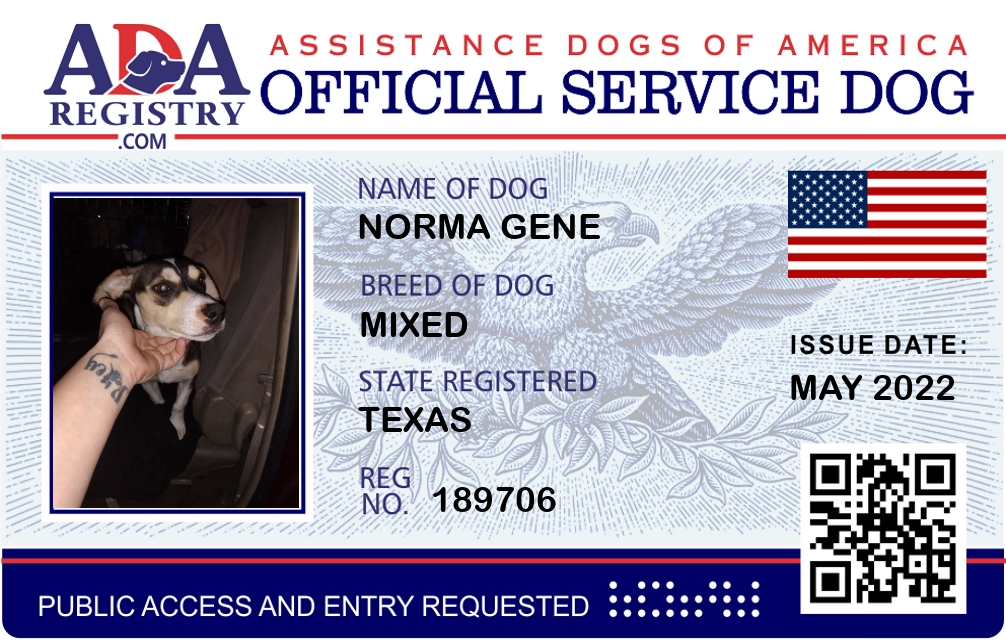 Service Dog Registration for Norma Gene