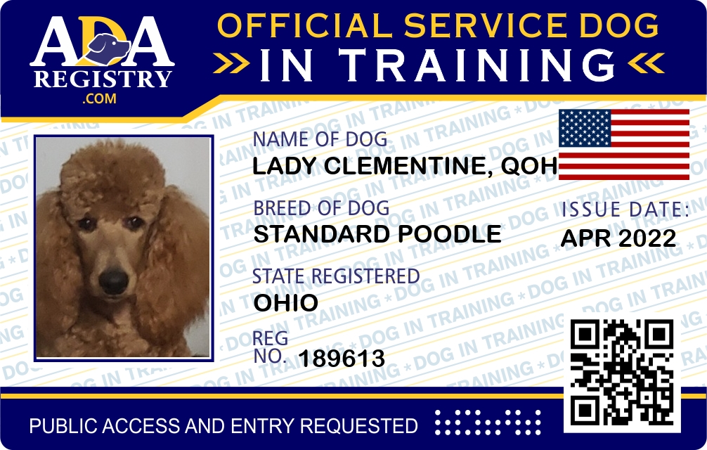 Service Dog In Training Registration for Lady Clementine, QoH
