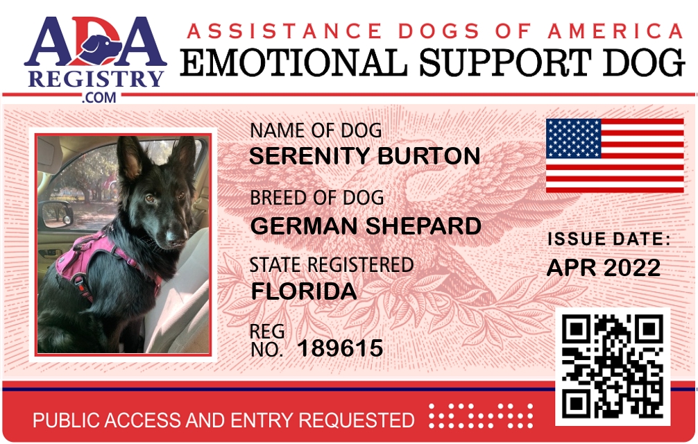 Emotional Support Dog Registration for Serenity Burton