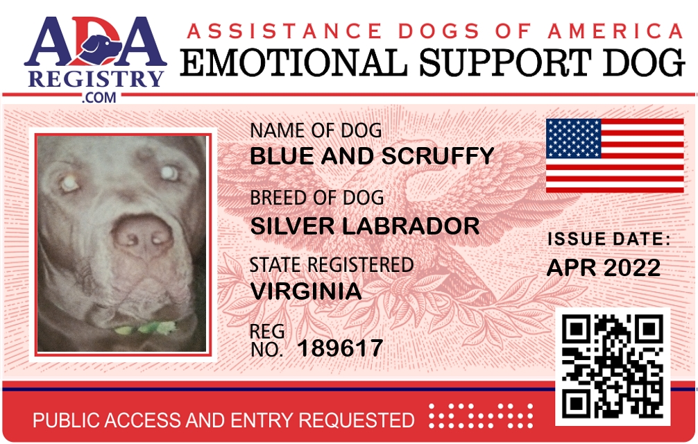 Emotional Support Dog Registration for Blue and Scruffy