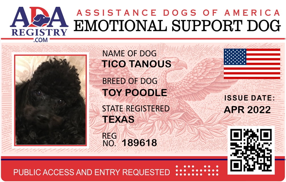 Emotional Support Dog Registration for Tico Tanous