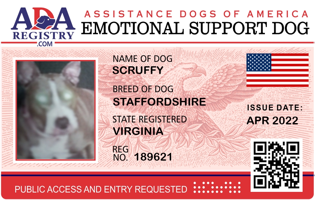 Emotional Support Dog Registration for Scruffy