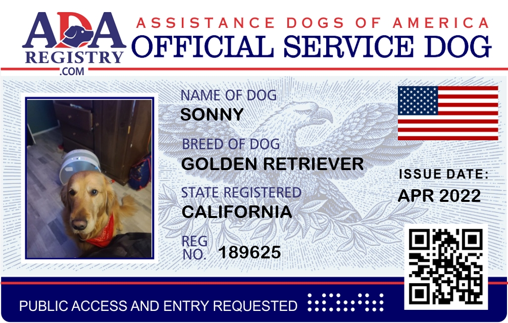 Service Dog Registration for SONNY