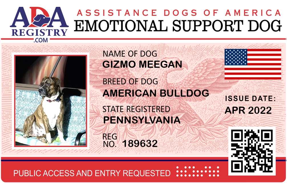 Emotional Support Dog Registration for Gizmo Meegan