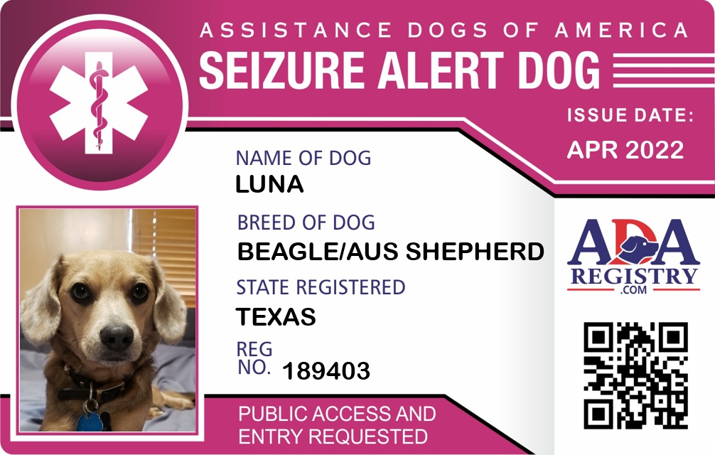 Seizure Assistance Dog Registration for Luna