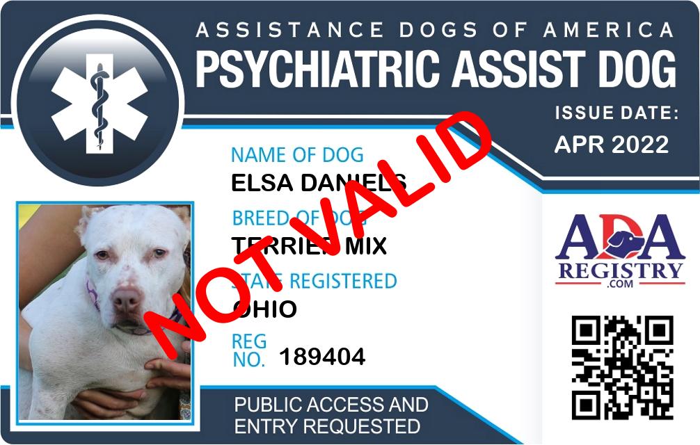 Psychiatric Service Dog Registration for elsa daniels