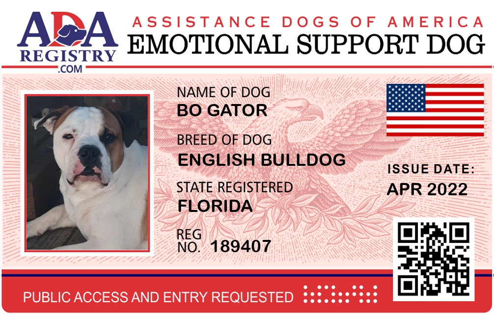 Emotional Support Dog Registration for Bo Gator