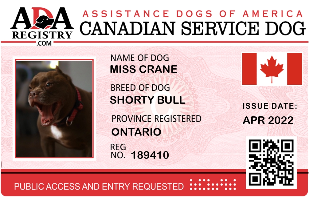 Service Dog Registration for Miss Crane