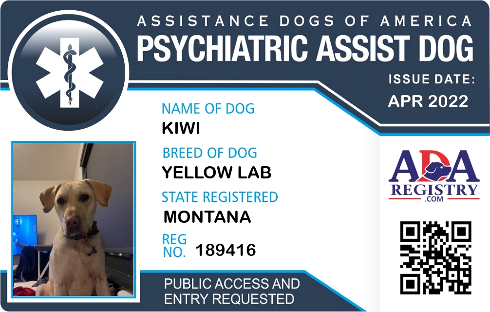 Psychiatric Service Dog Registration for Kiwi