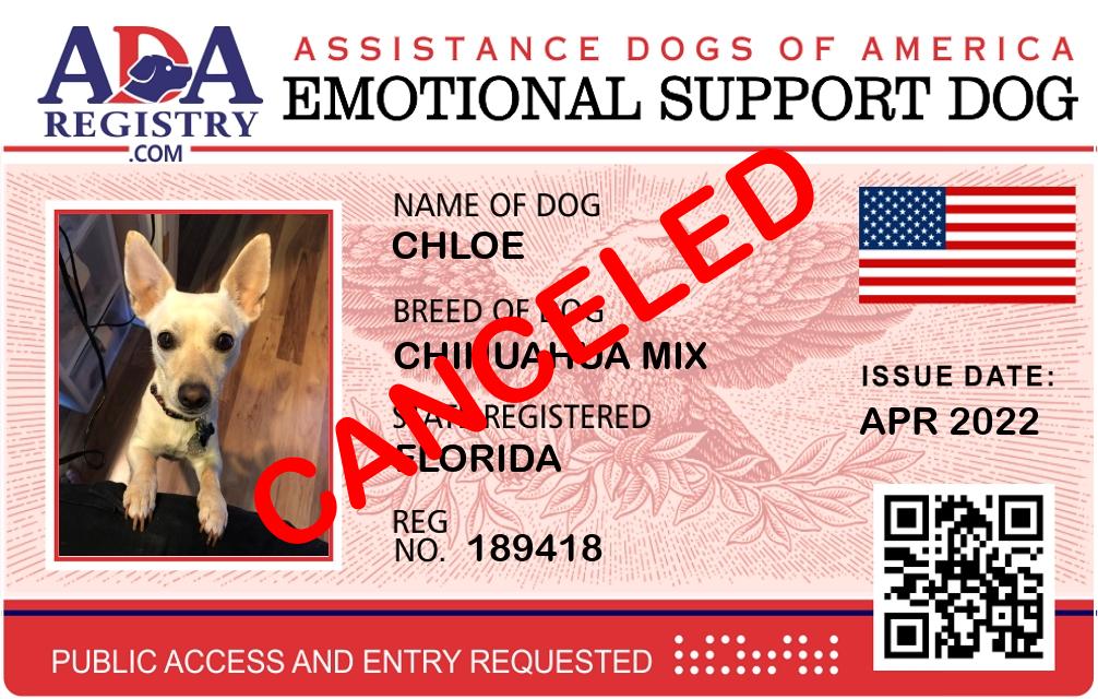 Emotional Support Dog Registration for Chloe