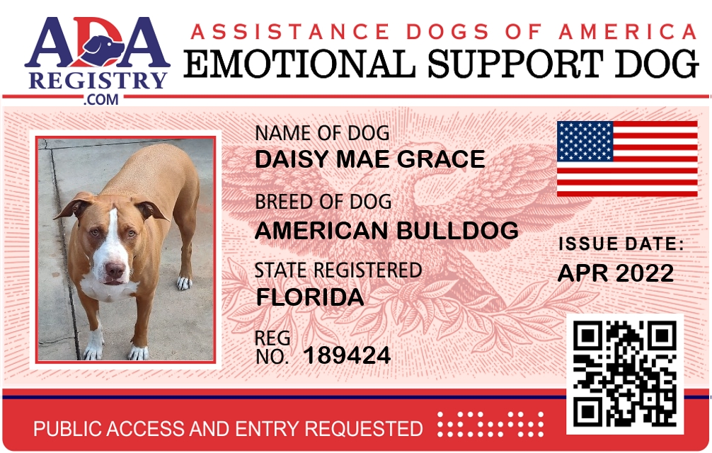 Emotional Support Dog Registration for Daisy Mae Grace
