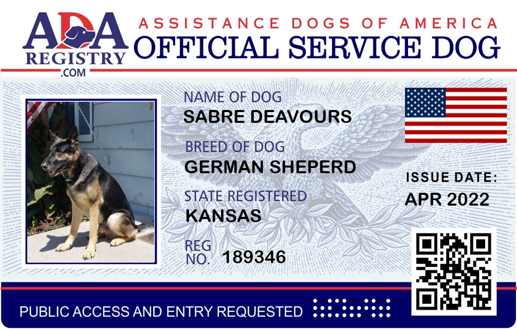 Service Dog Registration for Sabre Deavours