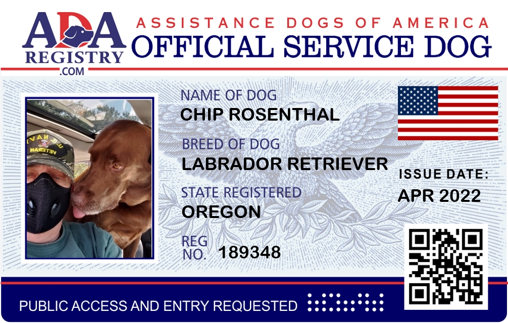 Service Dog Registration for CHIP ROSENTHAL