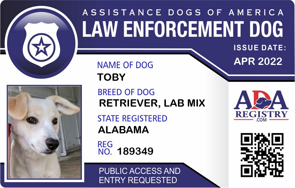 Police / Law Enforcement Dog Registration for Toby