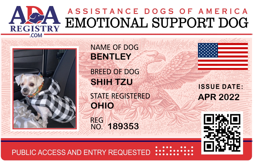 Emotional Support Dog Registration for Bentley