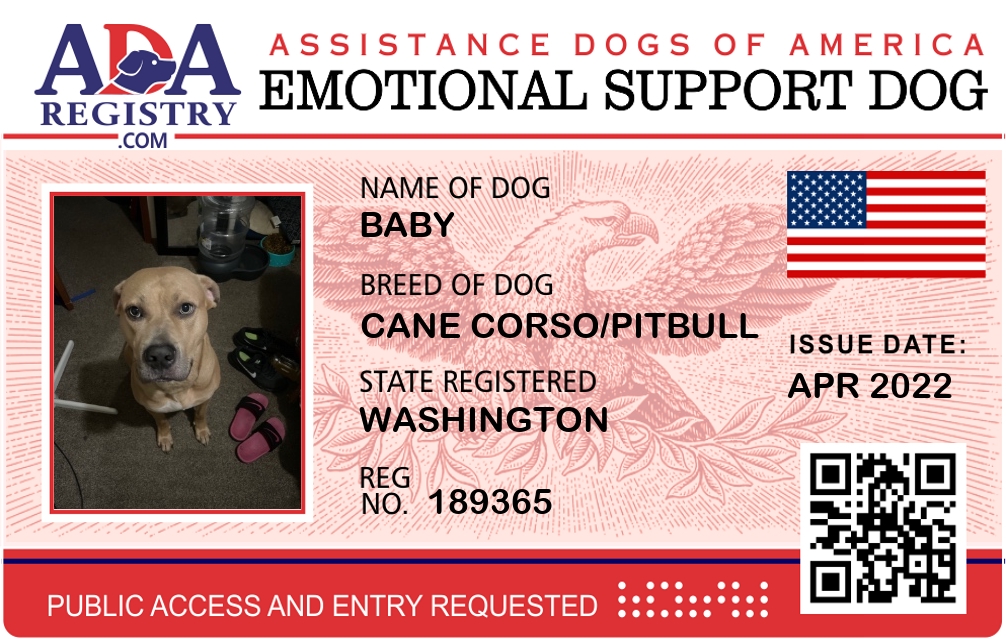 Emotional Support Dog Registration for Caine