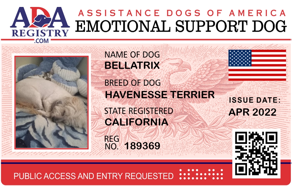 Emotional Support Dog Registration for Bellatrix