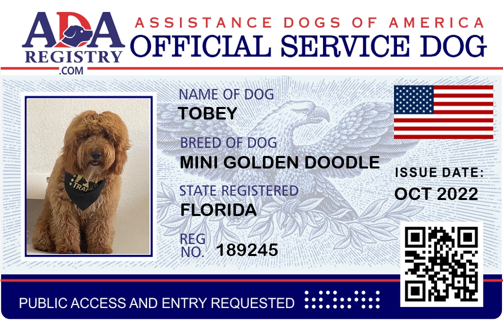 Service Dog Registration for Tobey