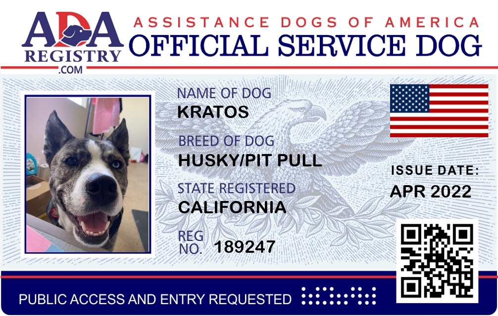 Service Dog Registration for Kratos