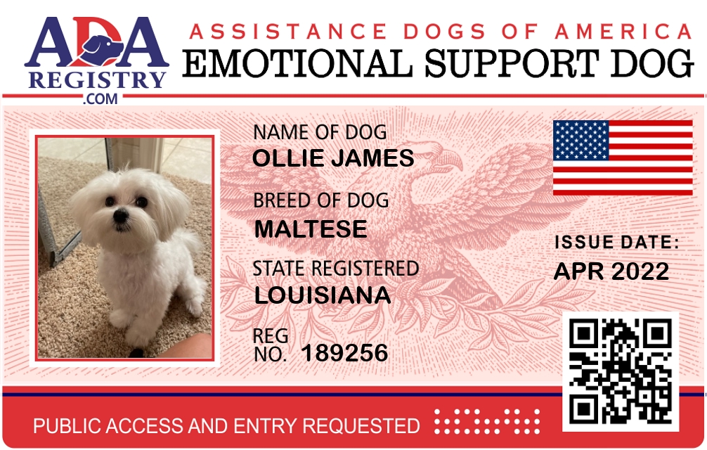 Emotional Support Dog Registration for Ollie James