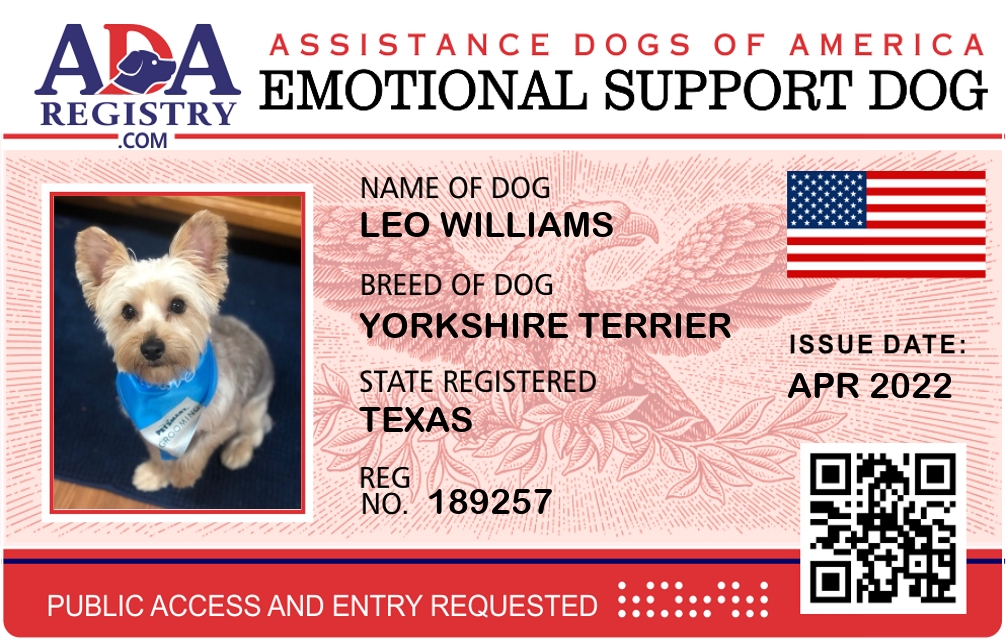Emotional Support Dog Registration for Leo Williams