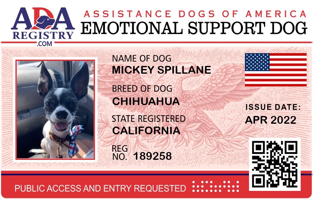 Emotional Support Dog Registration for Mickey Spillane