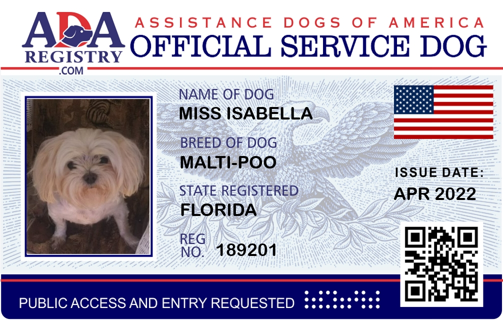 Service Dog Registration for Miss Isabella